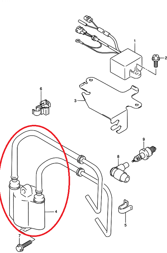 Катушка зажигания 33410-90L00-000 применяется в подвесных лодочных моторах Suzuki DT15/DT9.9 л.с.